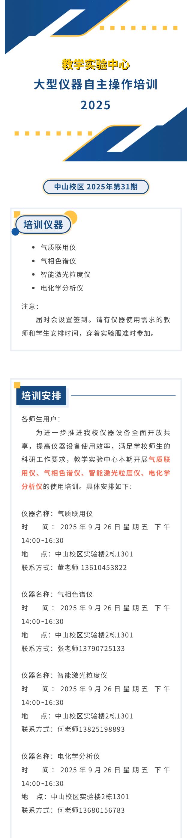 教学实验中心大型仪器自主操作培训(中山校区 2025年第31期)