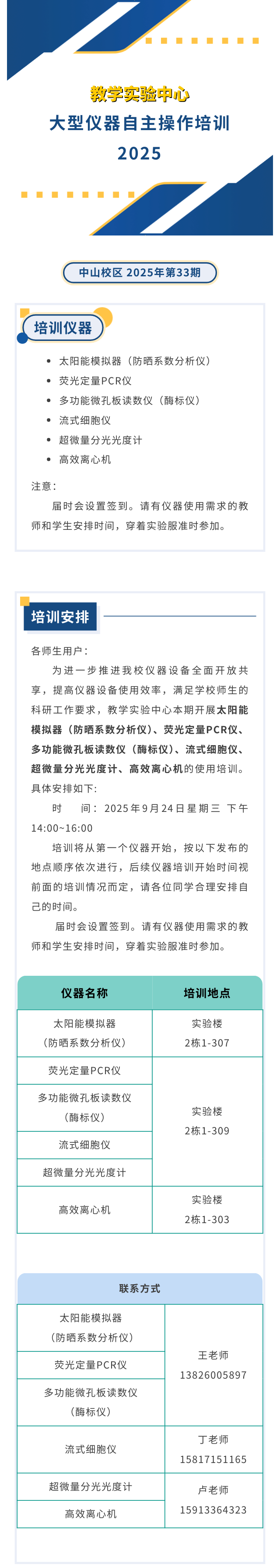教学实验中心大型仪器自主操作培训(中山校区 2025年第33期)