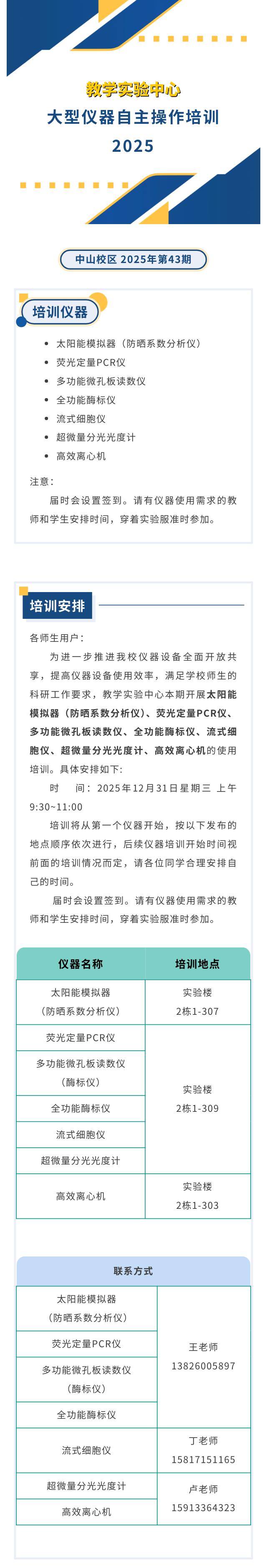 教学实验中心大型仪器自主操作培训(中山校区 2025年第43期)