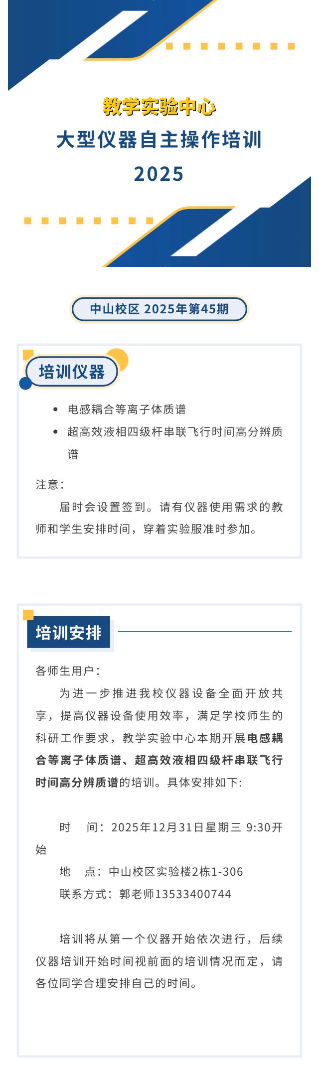 教学实验中心大型仪器自主操作培训(中山校区 2025年第45期)